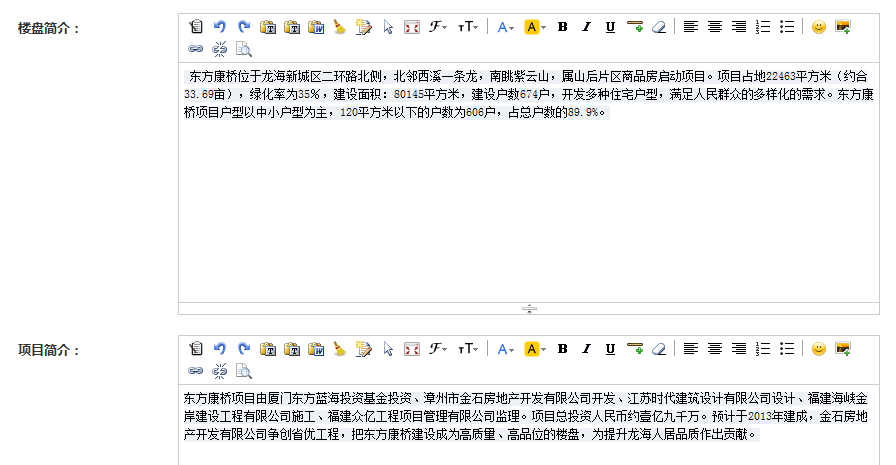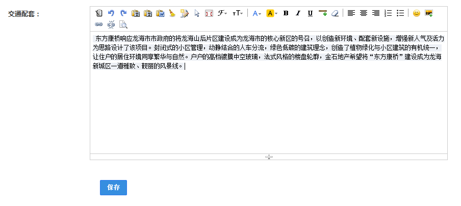 3、编辑楼盘简介、项目简介、交通配套,点击保存即可。