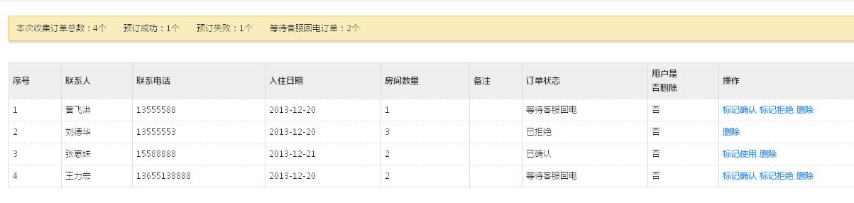 1、点击订单管理,进入订单管理页面,会出现客户预订的信息;
