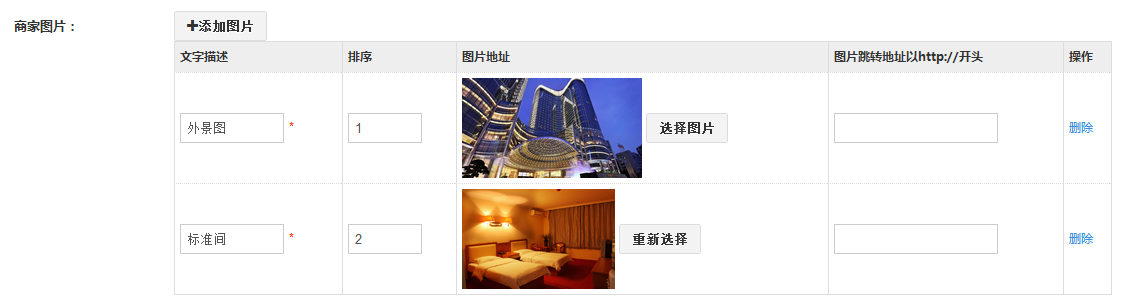 2、上传商家图片:点击添加图片,编辑文章描述、设置排序、上传图片,图片大小建议800x600;