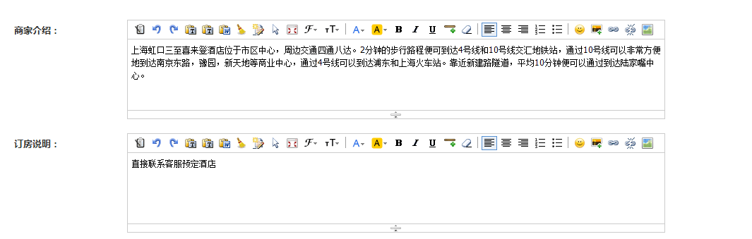 3、编辑商家介绍、订房说明;