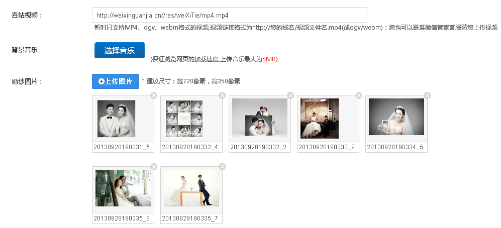 2.上传喜帖视频、背景音乐、婚纱照等;