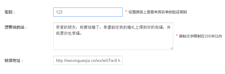 3、设置微信上查看来宾名单的验证密码,想对来宾说的话,保存即可。