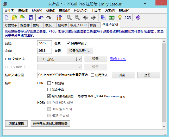 调整完图像之后,我们可以创建全景图了